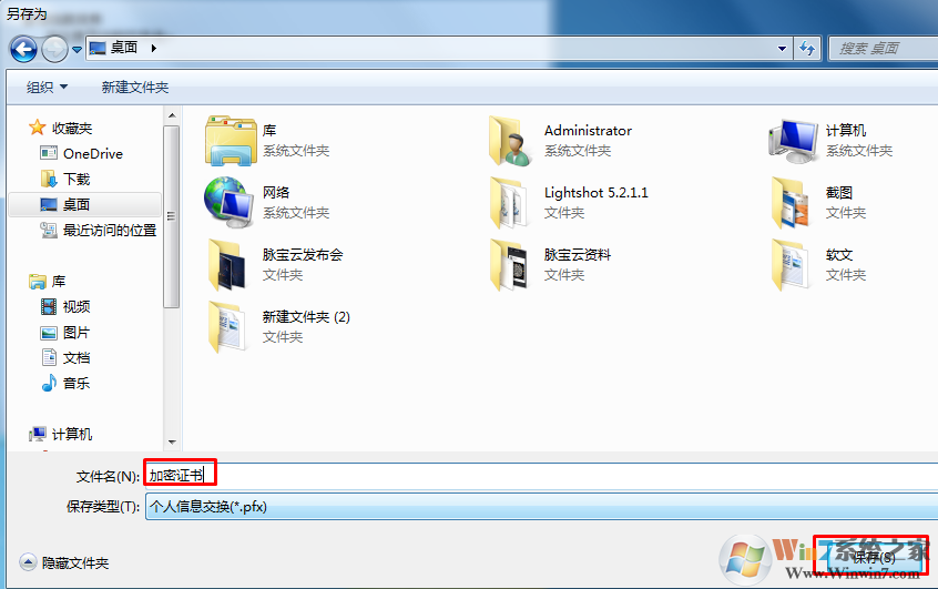 6、點(diǎn)擊瀏覽選擇存儲路徑,然后將文件名修改位加密證書