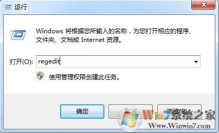 1、首先Win+R調(diào)出“運(yùn)行”,鍵入regedit并回車,打開注冊表編輯器。