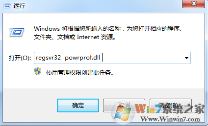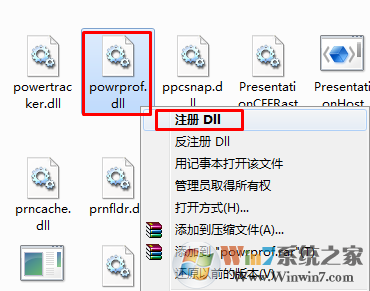 3、右鍵powrprof.dll注冊,或者打開運(yùn)行--輸入regsvr32 powrprof.dll 確定即可