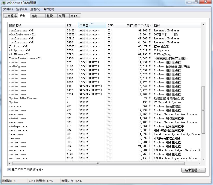 以下為Win7進(jìn)程圖: