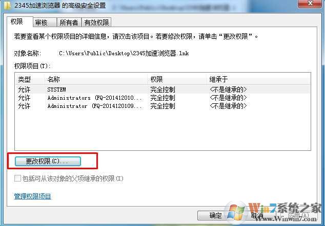 3、然后點擊更改權(quán)限按鈕;