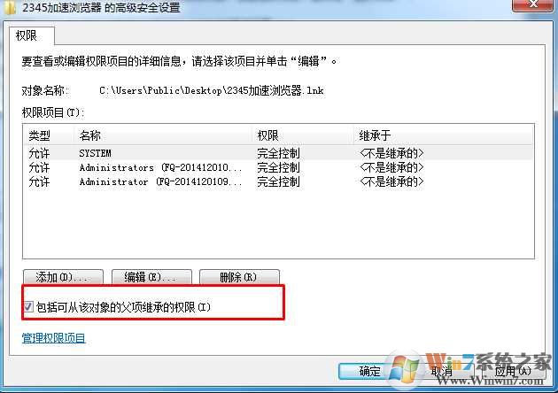 4、勾選“包括可從該對象的父項繼承的權(quán)限”選項,確定!