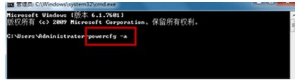 3、在命令窗口里面輸入“ powercfg -a” ,按【Enter】鍵。