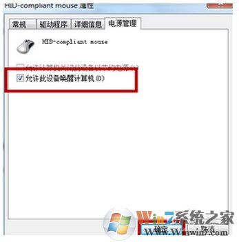 4、打勾“允許此設(shè)備喚醒計(jì)算機(jī)”,按“確定”