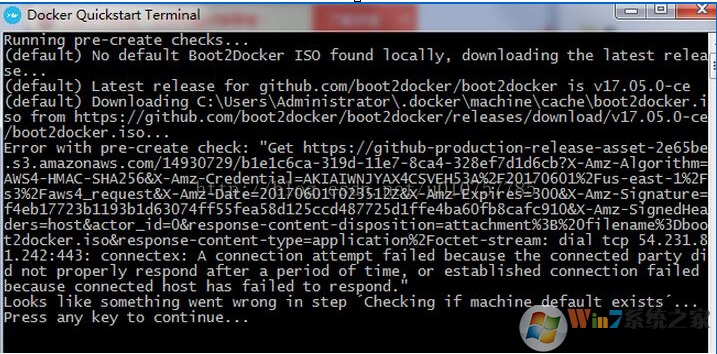 這就是啟動時如果檢測到?jīng)]有 Boot2Docker,就會去下載,這個下載過程下載失敗,導(dǎo)致啟動失敗