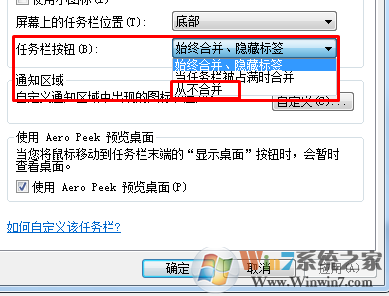 2、選擇從不合并,然后確定即可