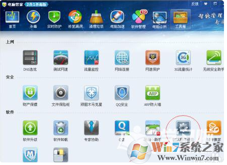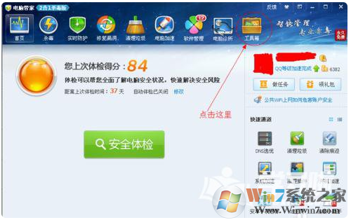 1、打開QQ電腦管家,點(diǎn)擊“工具箱”按鈕,進(jìn)入“工具箱”界面;