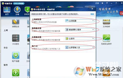 4、除了能夠設(shè)置默認(rèn)瀏覽器,還能設(shè)置默認(rèn)視頻程序,默認(rèn)輸入法程序,QQ電腦管家的功能還是很強(qiáng)大的;