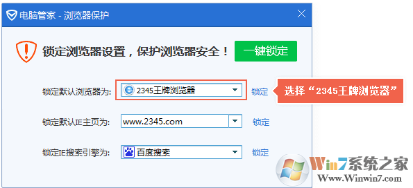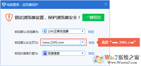 4、從下拉菜單選擇網(wǎng)址鎖定為當(dāng)前主頁,并點(diǎn)擊一鍵鎖定。