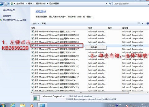 (2)按下圖操作卸載已經(jīng)安裝的 KB2839229、KB2838727 補丁后并刪除C:WindowsSoftwareDistributionDownload下的所有內(nèi)容后重啟即可,如圖: