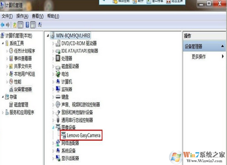 2、在打開的計(jì)算機(jī)管理界面中,點(diǎn)擊“設(shè)備管理器——圖像設(shè)備”,然后在圖像設(shè)備下面選擇攝像頭,右鍵選擇“更新驅(qū)動(dòng)程序”。