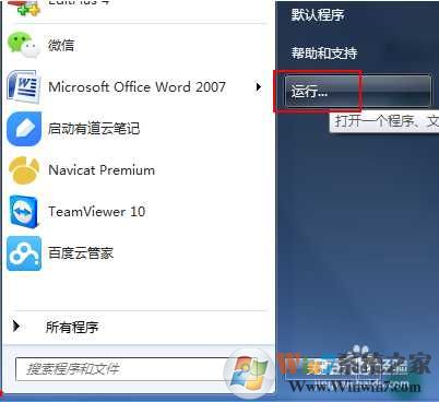 1、首先點擊開始-運行,打開運行對話框。