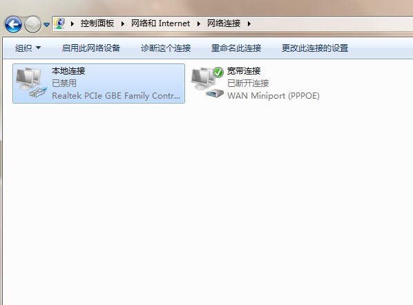 4、就能看到如果所示,本地連接已禁用