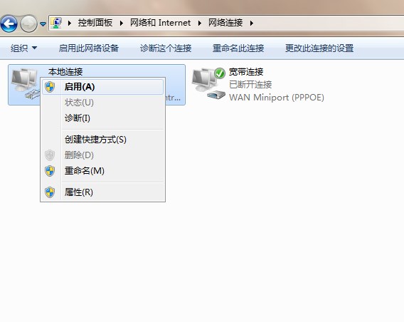 5、右鍵本地連接、選擇啟用即可