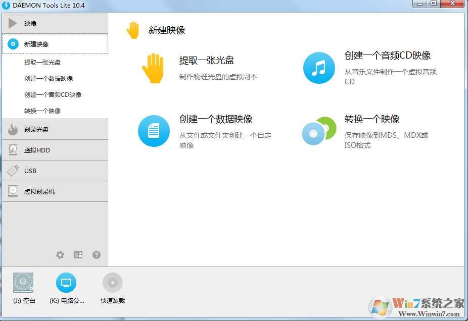 5、同時(shí)daemon tools lite還有更多的功能,如提取光盤(pán)鏡像 創(chuàng)建CD鏡像、刻錄鏡像、虛擬HHD、虛擬刻錄機(jī)等
