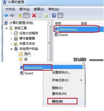 2、找到【administrator】用戶 ,右鍵選擇【屬性】,把【帳戶已停用】前面的勾去掉,【確定】