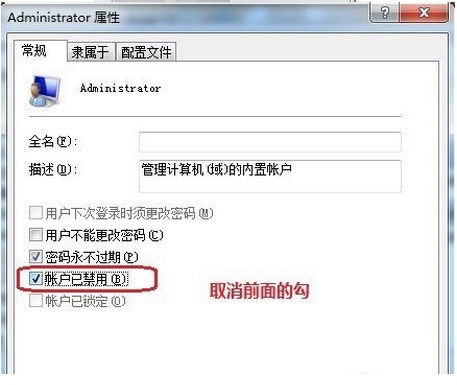 3、如果要禁用的話把【帳戶已停用】選項勾打上即可。