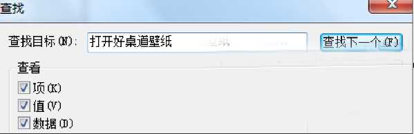 2、在打開的注冊(cè)表編輯器中點(diǎn)擊“編輯——查找”,在查找框中輸入“打開好桌道壁紙”;