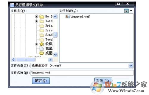 4、彈出“另存通訊錄文件為”對(duì)話框,選擇要保存通訊錄文件的位置,單擊“確定”按鈕