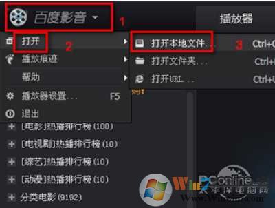 2、依次點(diǎn)擊右上角的圖標(biāo),百度影音圖標(biāo)-打開(kāi)-打開(kāi)本地文件。
