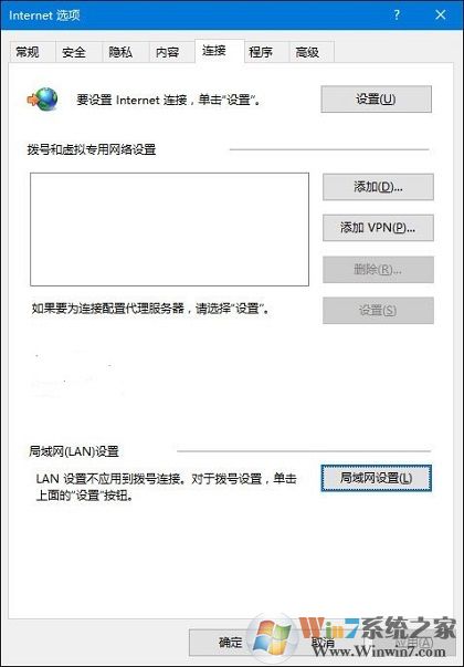 先打開Internet選項(xiàng),切換到“連接”選項(xiàng)卡: