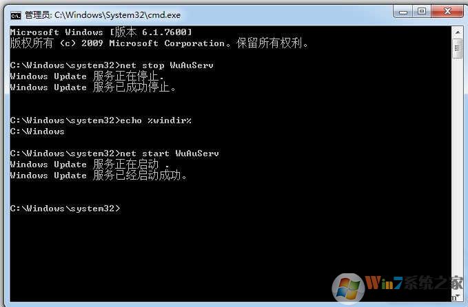 5.繼續(xù)輸入 net start WuAuServ