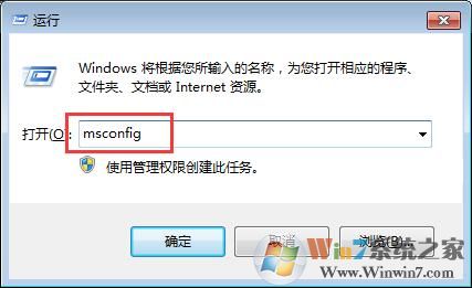 1、按win+r組合快捷鍵,打開運行窗口,輸入“msconfig”回車確認。如下圖所示: