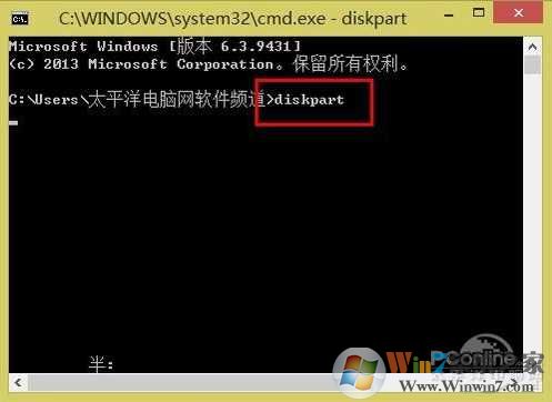 命令行提示符模式下直接輸入“diskpart”