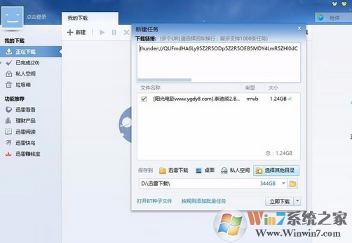 3、然后迅雷會自動檢測到下載目標,跳到新建任務(wù)的任務(wù)框。
