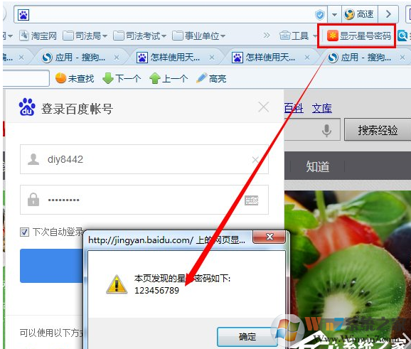 5、當(dāng)我們想查看當(dāng)前頁面表單中的星號時,只需要點(diǎn)擊“顯示星號密碼”按鈕就可以啦。