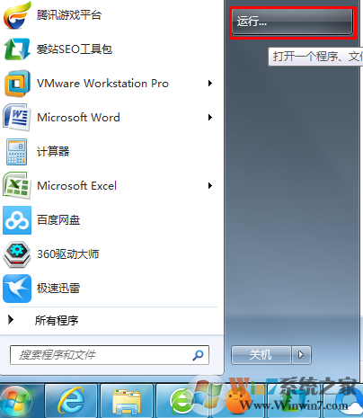 1、開(kāi)始菜單選擇運(yùn)行,或者win+r打開(kāi)運(yùn)行