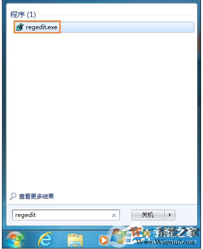 1、在開始搜索框鍵入regedit命令,搜索出來的結(jié)果單擊程序下的regedit.exe,打開注冊表編輯器。