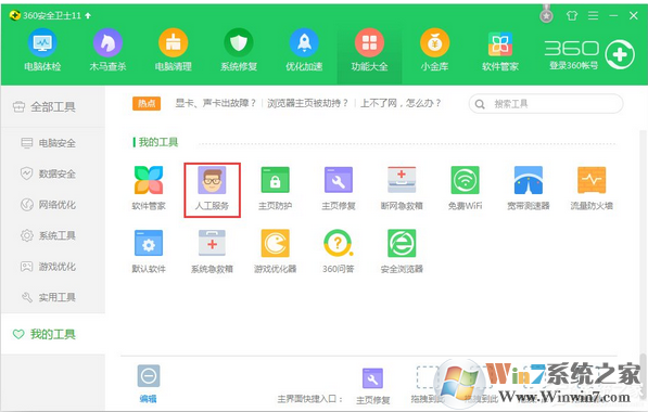3、在“我的工具”中找到剛才已經(jīng)添加好的“人工服務(wù)”,點(diǎn)擊打開它。