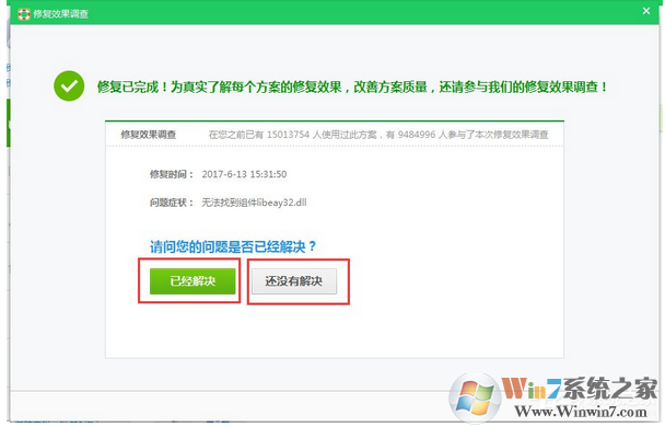 6、好了,修復(fù)完成,可以自己先去驗(yàn)證一下是不是真的解決了,如果真的解決了,那么可以點(diǎn)擊“已經(jīng)解決”,如果沒有解決,那么可以點(diǎn)擊“還沒有解決”,這個(gè)時(shí)候會(huì)給你推薦其他的方案,然后再按照推薦的方案來試,一般都會(huì)解決問題。