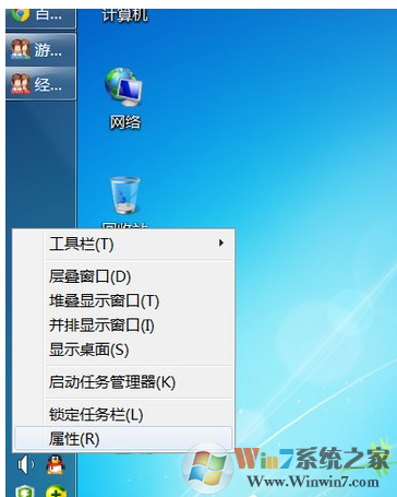 1、右擊任務(wù)欄空白區(qū)域,選擇屬性;