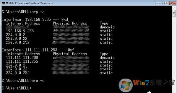開始-cmd-arp -d清除arp列表。
