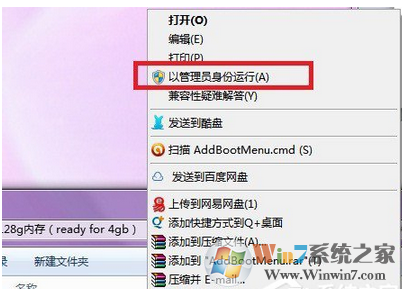 3、右鍵文件夾里面的AddBootMenu.cmd文件,以管理員身份運(yùn)行,如果沒效果就重新試一遍。