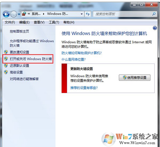 7、點擊“打開或關閉windows防火墻”;