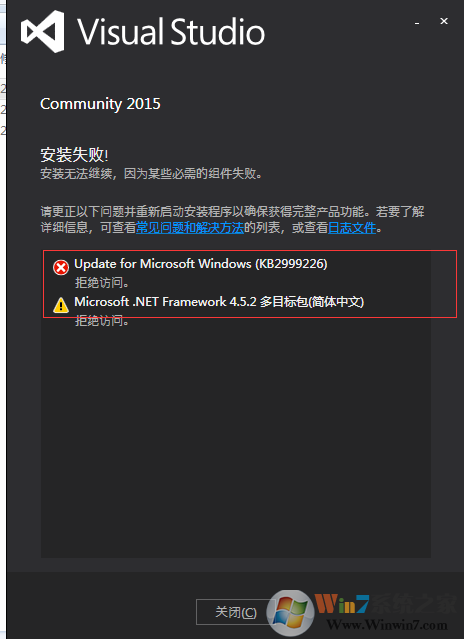 如上所述就是Win7系統(tǒng)中安裝Visual Studio 2015時(shí)遇到失敗的主要原因了,當(dāng)然還有一些別的原因,如下載的VS2015安裝包不正常等因素,大家可以按錯(cuò)誤提示找到相應(yīng)的解決方法。