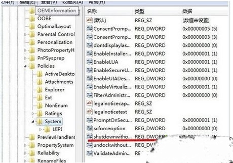 2、在打開(kāi)的注冊(cè)表編輯器中,展開(kāi)到以下注冊(cè)項(xiàng)HKEY-LOCAL-MACHINE\SOFTWARE\Microsoft\Windows\CurrentVersion\policies,點(diǎn)擊“system”文件夾, 然后右側(cè)雙擊“shutdownwithoutlogon”項(xiàng);