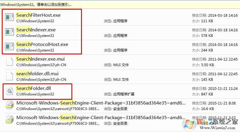 C:\windows\System32\文件夾下的 SearchFilterHost.exe、SearchIndexer.exe、SearchProtocolHost.exe、SearchFolder.dll 到問題電腦下覆蓋。
