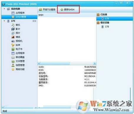 總結(jié):以上就是Win7系統(tǒng)下使用iTools備份SHSH的方法和步驟了。如不知道怎么使用iTools備份SHSH的朋友,可以參考一下上述的方法步驟去操作,這樣你就知道怎么使用iTools備份SHSH了。希望對大家有幫助