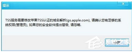 6、點擊開啟TSS服務(wù)時,會彈出修改host文件的確認對話框,點確定即可。如果是win7系統(tǒng)必須使用管理員身份運行該程序。