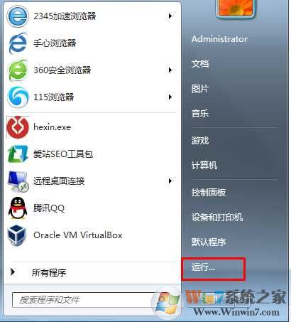 1、從開始菜單中找到“運行”打開,或是使用WIN+R,調出運行;