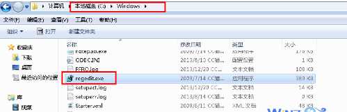 1、打開C盤,然后再打開windows文件夾,找到文件名為regedit.exe