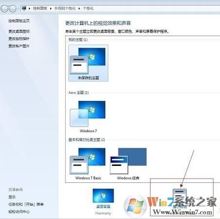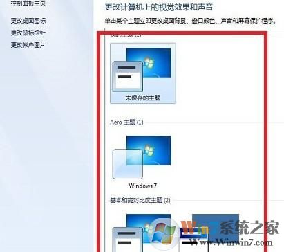 2、進(jìn)入個(gè)性化設(shè)置后,可進(jìn)行更改Win7配置方案了,比如更換下主題,即可自動(dòng)變換配色方案了。我們找到Windows7 basic,點(diǎn)擊后就會(huì)換成相應(yīng)的配色。
