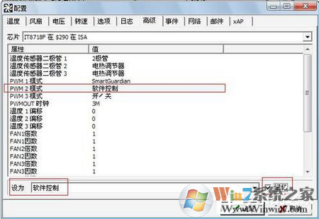 3、我們先到[高級]菜單,在「芯片」的位置選擇控制芯片,不太了解的朋友也不用擔(dān)心,因為通常只有選擇了正確的控制芯片才能看到如圖中的畫面,若選擇了其他的是不會有這些選項的。接著,選中「PWM 2 模式」選項,這個選項是指對2號風(fēng)扇的控制(PWM 1、3、4、5以此類推)。我們需要在下方為其設(shè)定控制方式,這里我們要選擇「軟件控制」。然后[記憶]。 這樣我們就可以回到主畫面去調(diào)整風(fēng)扇轉(zhuǎn)速了。需要注意的是,有些風(fēng)扇當轉(zhuǎn)速低于一定程度X%時,風(fēng)扇會停轉(zhuǎn),所以記得要關(guān)注風(fēng)扇轉(zhuǎn)速,以免造成損失。對于一般的風(fēng)扇來說,轉(zhuǎn)速0%時,風(fēng)扇轉(zhuǎn)速最慢。