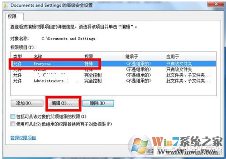 5、繼續(xù)選擇允許類型的everyone點(diǎn)擊下方的編輯按鈕