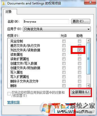 6、看到了吧,就是這個(gè)地方權(quán)限拒絕了,點(diǎn)擊下方的完全清除按鈕,然后一路點(diǎn)擊確定按鈕退出!