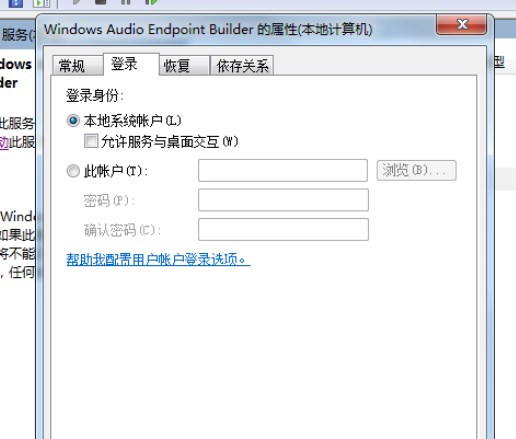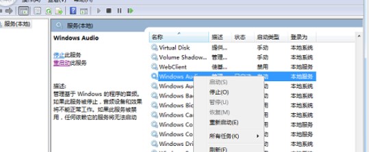 2、點(diǎn)擊“開始”菜單——》選擇“所有程序”——》打開“管理工具”文件夾——》單擊“服務(wù)”——》在服務(wù)窗口中找到“windows audio,接著鼠標(biāo)右鍵點(diǎn)擊“windows audio”服務(wù),選擇“屬性”——》然后切換到“登錄”選項(xiàng)卡中——》先將“登錄選項(xiàng)”設(shè)置為“本地系統(tǒng)帳戶”,點(diǎn)擊一次“應(yīng)用”—— 》再重新將“登錄選項(xiàng)”設(shè)置為“指定賬戶”,下方選擇“local service”賬戶——》點(diǎn)擊“確定”退出后,重新啟動(dòng)計(jì)算機(jī)即可